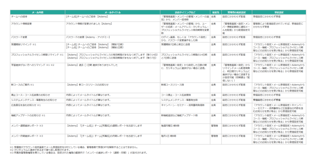 ■コース・機能・プロフェッショナルライセンス期限・キャンペーン等に関する受信設定