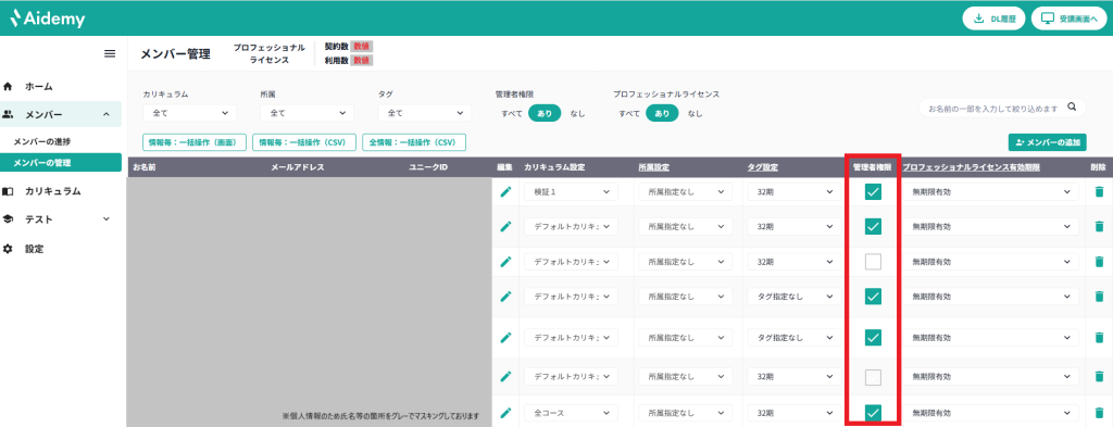 プロフェッショナルライセンスを付与しなくてもAidemy Business/GX管理者権限の付与が可能です。
